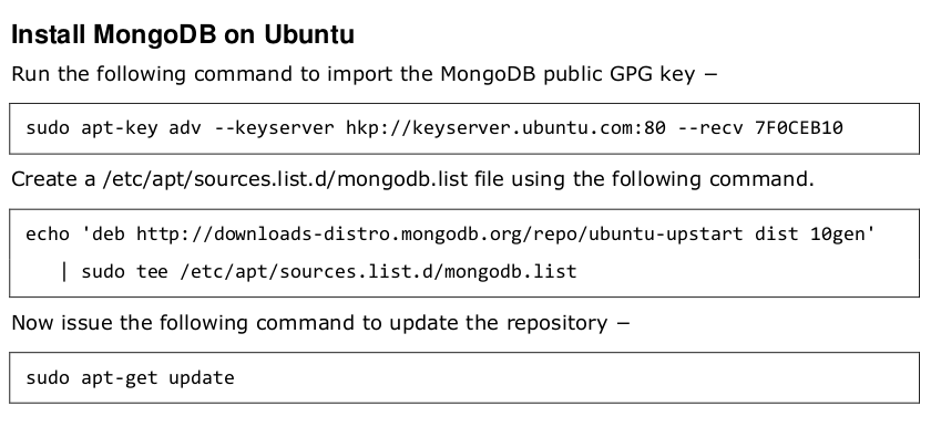 Download and install mongodb package: